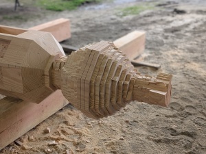The design of the frame provided opportunities for learning in areas such as square rule and scribe rule layout, compound roof joinery for hips and jacks, and of course the octagonal plan layout with five-sided posts.