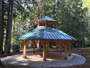 Flowing Lake Park had an existing pavilion structure that was in poor repair and in need of replacement and we were delighted to once again partner with Snohomish County. The project is an octagonal open-sided pavilion with monitor roof. The structure was designed by Jim DeSantis of Silver Creek Timberworks, who donated the design for our use.