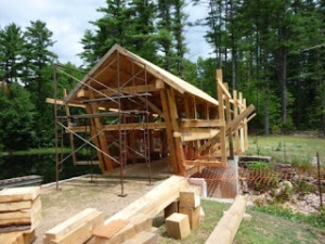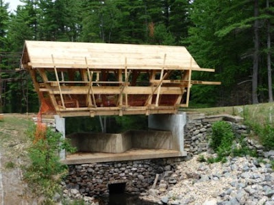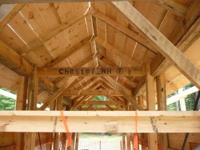 On July 31, 2011, a timber framed covered bridge was built by volunteers at the Wason Pond recreation area in Chester, New Hampshire. It is based on an 1850s style traditional New England covered bridge. Dozens of community members helped to raise the trusses, lay the siding, flooring and nail roof shingles.