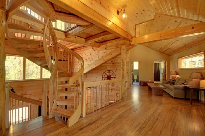 Timber frame homes are remarkably customizable in design, with the ability to adapt the floor plan, illuminate the house with natural light, and make use of drywall. Homes built with a frame of timber have a strong exterior shell, so no interior wall is needed to hold the shape of the structure, enabling walls to be placed where desired or for no interior walls to be used at all, creating large open spaces. The strong frame also enables architects to make more use of windows.